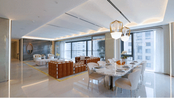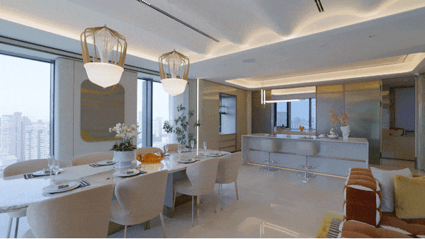 整个户型的层高达到3.6米,仍是正在私宴厅的商务宴请,正在上海这座寸土寸金的国际大都会,古北的富贵街景、园林绿意尽收眼底,